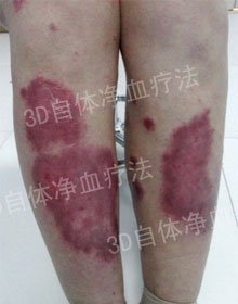发病过程: 患病原因具体不详,始发于去年夏天,偶然发现皮肤上出现一个个点滴状红疹,伴有瘙痒,经过短期外用药治疗后,红疹逐渐消退。至冬天,由于一次发烧引起复发,病情发展迅速,短期内片状分布的红疹发展成大块浸润斑,并覆盖厚重鳞屑,服用中成药效果不佳,尝试使用偏方,导致病情恶化。经熟人介绍,患者先在我院官方网站上进行了专家预约,随后来我院门诊部就诊。 治疗概述: 我院专家接诊该患者后,首先对患者进行了详细的检查,分析检测数据,结果显示患者的血常规正常,体内微量元素也正常 ,微循环呈中度异常。经过进一步询问,得知患者平时学业比较繁重,饮食不规律,导致患者的微循环异常,内分泌失调。病情诊断为红皮病型牛皮癣进行期。 根据患者的病情,专家给她制定了一套个性化治疗法案,采用我院特色“3D自体净血疗法 ”,配合外用药物和食疗调理进行康复治疗。在患者的积极配合下,一个疗程的精心治疗后,患者的病情已经完全康复,皮损已经消退,皮肤各项指标恢复到正常水平。