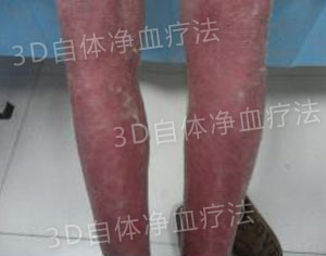 发病过程: 患者尚某患银屑病十多年,家里除了他,他的父亲以及伯父都患有此病,系遗传。接受过各种方式的治疗,皮损不见明显消退、一度尝试偏方,致病情加速恶化,全身大面积泛发潮红斑块,痛痒难耐。 由于生活环境潮湿阴暗,加上护理不当,导致尚某腿部发生关节病变,加上皮损鳞屑不断脱落,情况十分危急。在当地医院接受一段时间的治疗,没有明显效果,放弃治疗。长期靠西药膏剂维持,全身的红皮成了他最大的痛。 治疗概述: 专家经过检测,断定尚某为关节病型银屑病与红皮病型银屑病并发,属于危重患者。随后组织专家组进行会诊,确定详细的治疗方案。首先对尚某进行全面的身体检测,包括皮屑检测、微循环、免疫功能以及关节检测,结合各项数据,展开针对性的全方位康复治疗。 治疗全程非激素,中西医结合。针对其关节病变采用中医手段,通过中药成分疏通经络,活血化瘀、祛风散寒、豁炎消肿,改善微循环、增强骨随后结合“3D自体净血疗法 ”展开皮损治疗,疗法的自体免疫抗复发不仅在短期内消除皮损,还建立起机体的抗复发机制,杜绝银屑病的复发。 三个疗程之后,尚某的病情完全康复,经过愈后跟踪,各项指标均良好,未出现任何复发迹象。 |